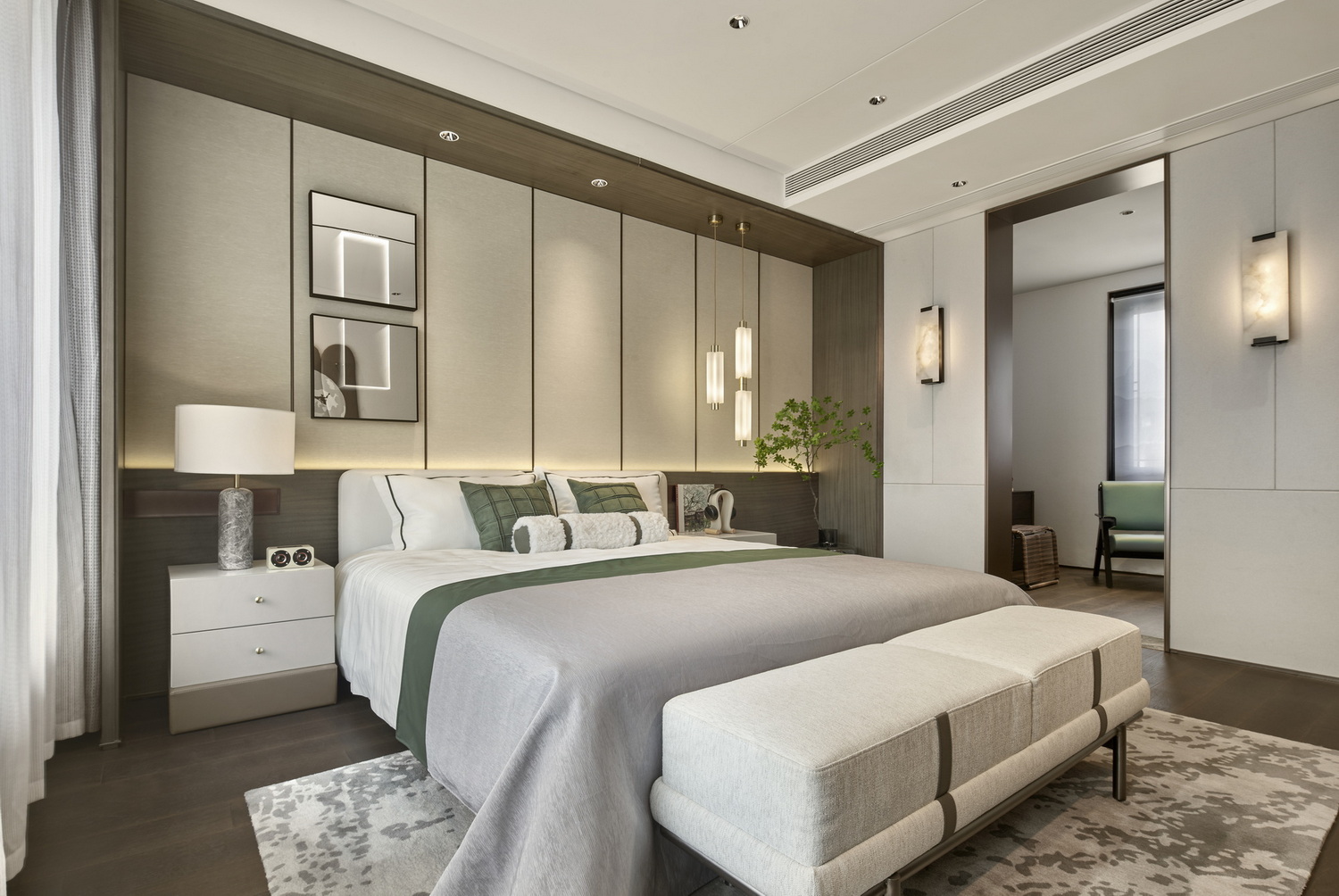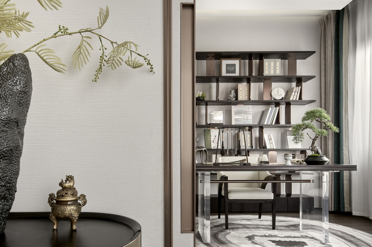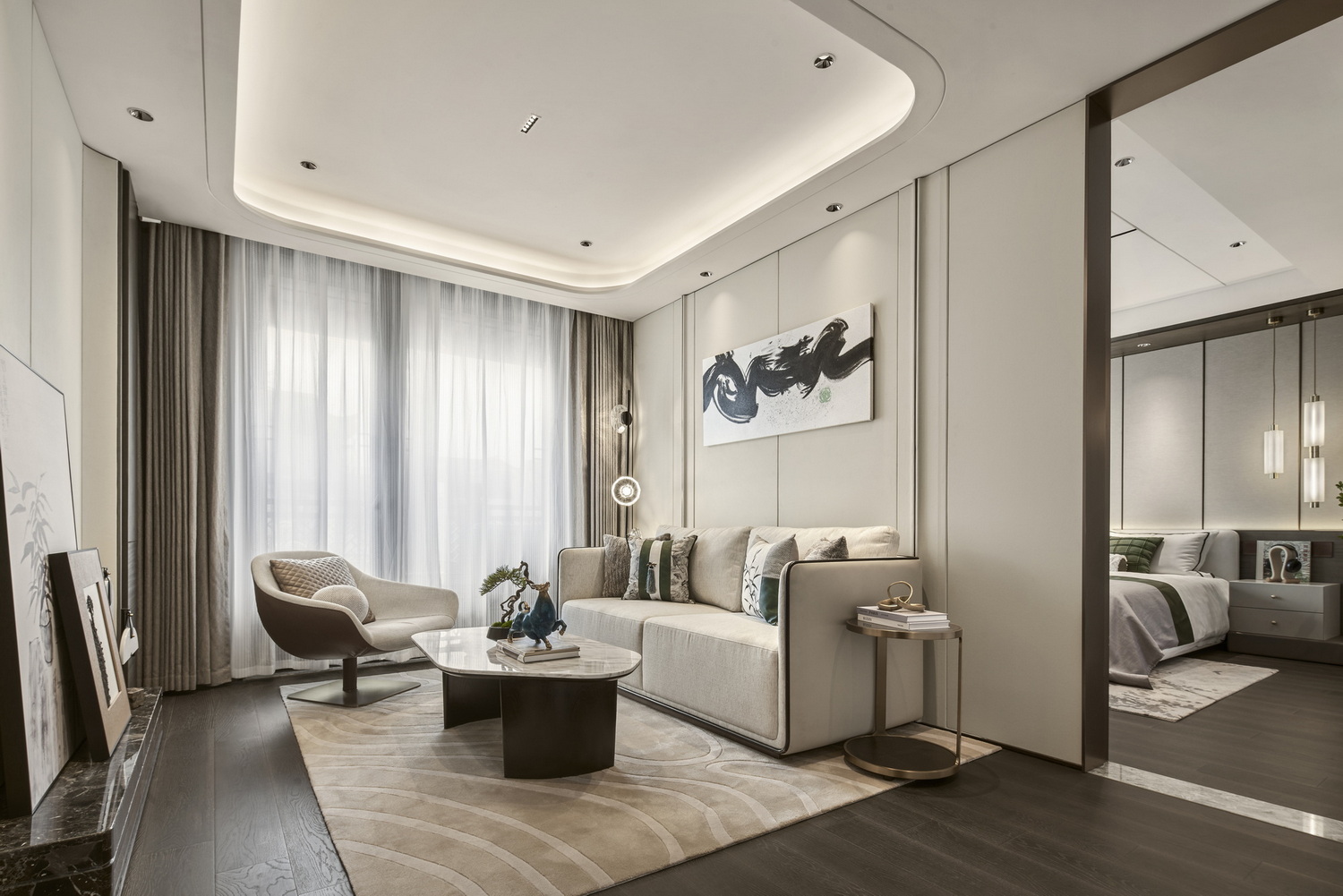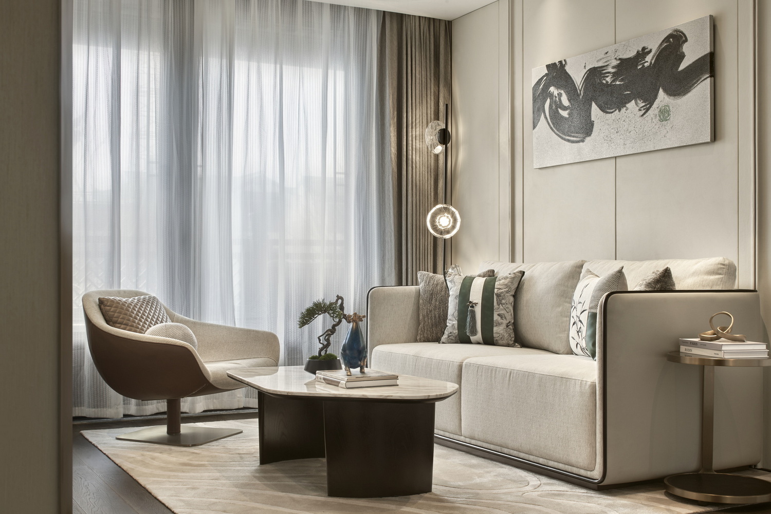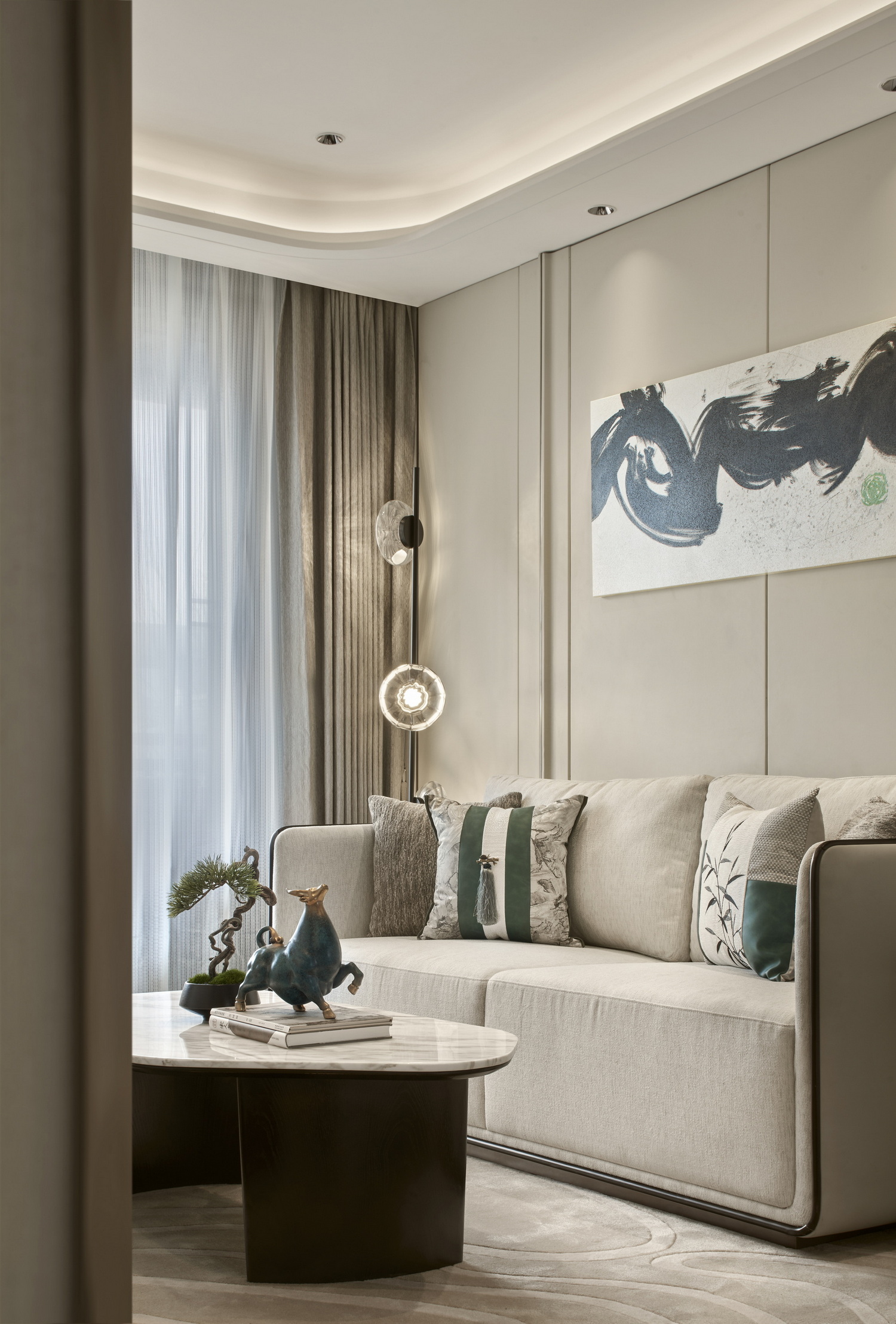 伊派設(shè)計(jì)以泰州人文繁華與思想定位,聚焦城市精英階層的生活態(tài)度,空間軟裝以現(xiàn)代的表現(xiàn)手法,打造新東方藝術(shù),闡述不同的生話場景在形式上隨著生活行為的變化而層層遞進(jìn),在場域之中構(gòu)建一場心靈與生活的對(duì)話,打造集社交、生活、藝術(shù)為一體的高品質(zhì)空間。